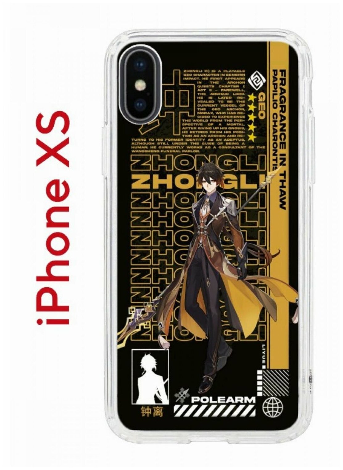 Чехол для iPhone X/XS Kruche Print Zhongli Genshin,противоударный силиконовый бампер с рисунком,пластиковая накладка с защитой камеры интересное: