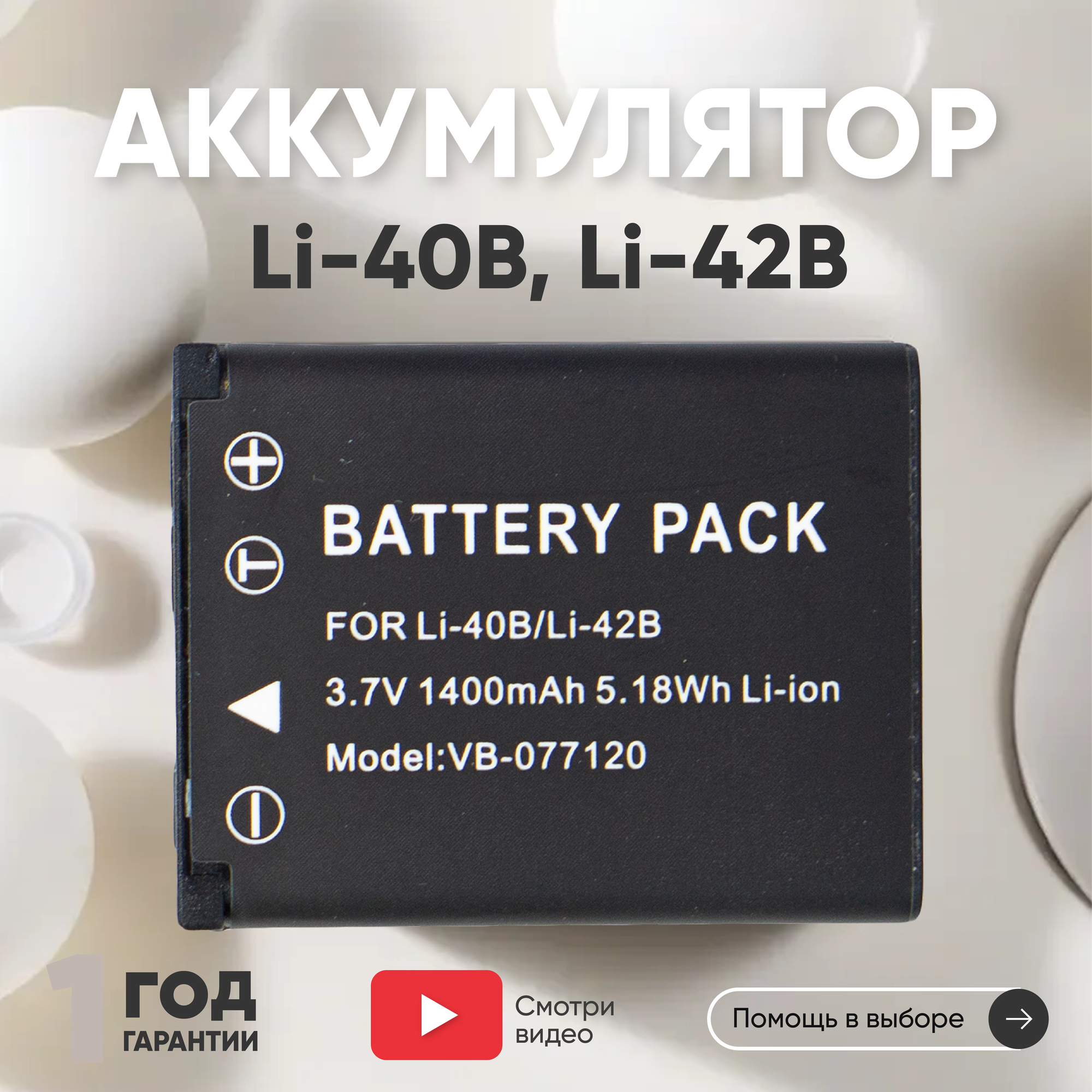 Купить Аккумулятор (АКБ, аккумуляторная батарея) Li-40B для фотоаппарата Li-40B, Li-42B 3.7В, 1400мАч