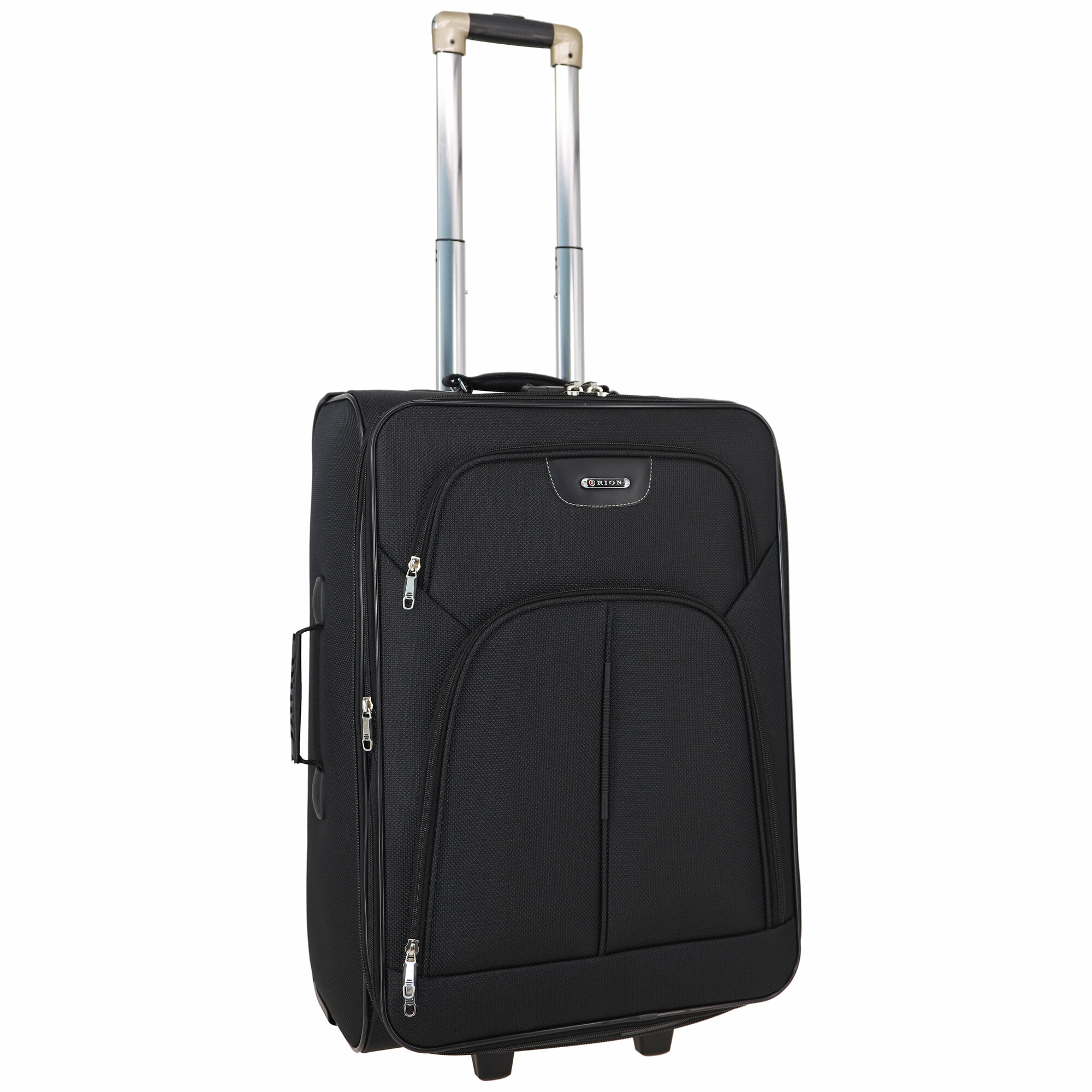 Чемодан Рион+ (RION+) R411, Ткань, 61 см, 52+13 литра, 2 колеса, M (56-70 см), усиленный до 25кг, черный