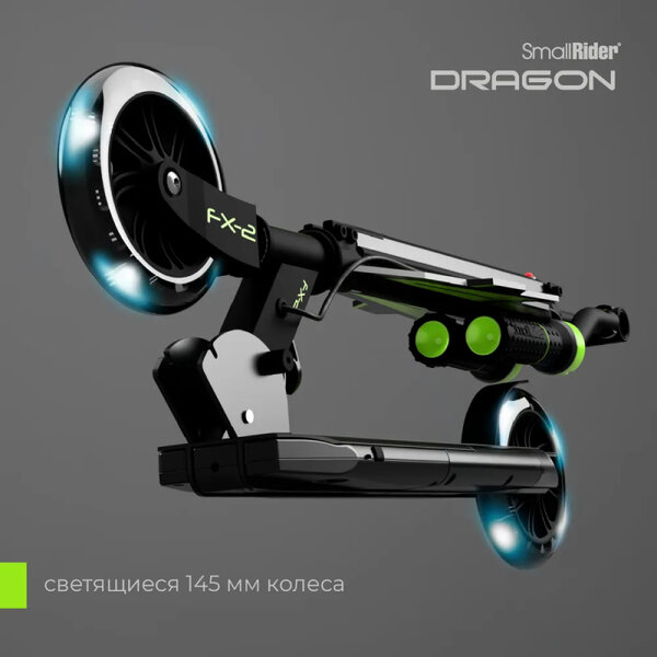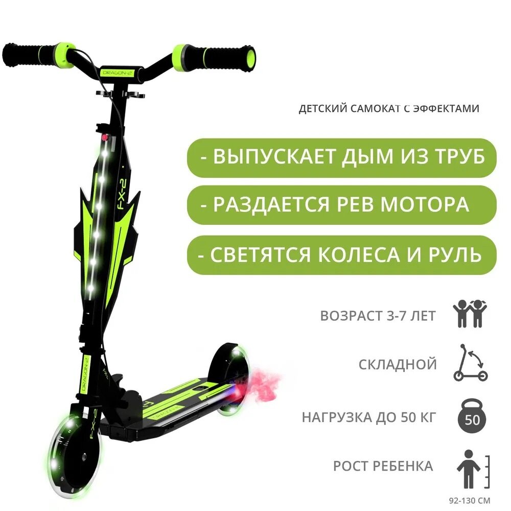 Купить Детский самокат с дымом, ревом мотора и подсветкой Small Rider Dragon 2 (зеленый), DRAGON2green