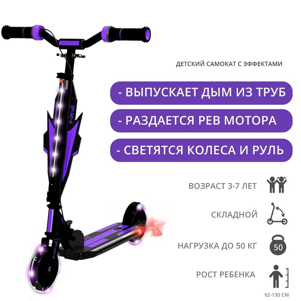 Купить Детский самокат с дымом, ревом мотора и подсветкой Small Rider Dragon 2 (фиолетовый), DRAGON2violet