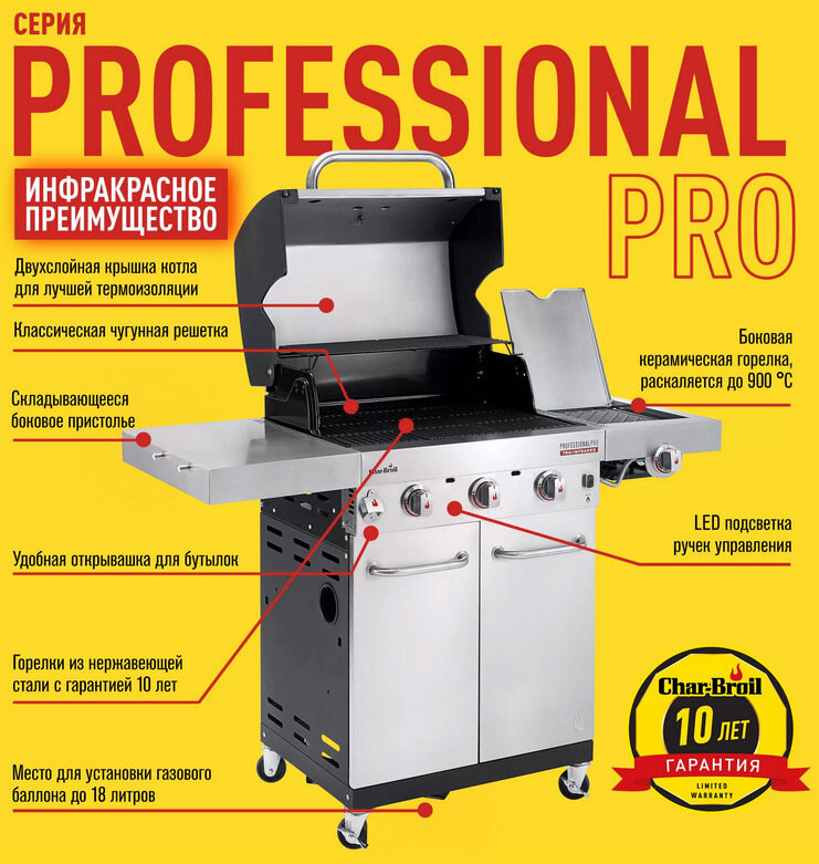 Char-Broil Газовый гриль Char-Broil Professional Pro 3S, 4 горелки (с ИК-горелкой) интересное: