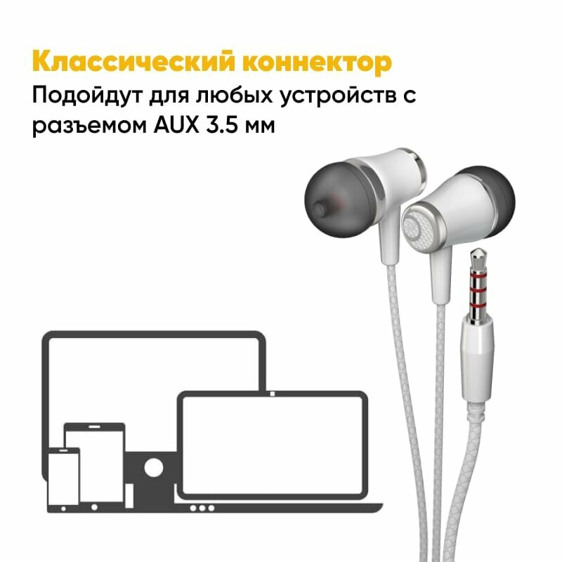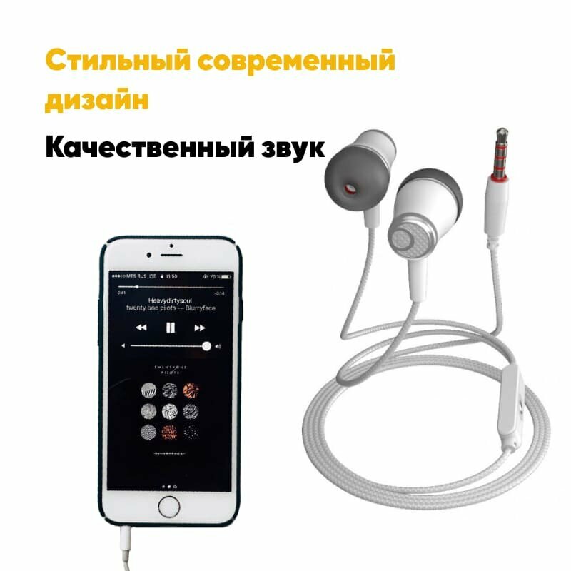 Наушники для телефона проводные Dream A06N aux 3.5mm 1m внутриканальные вакуумные белые интересное:
