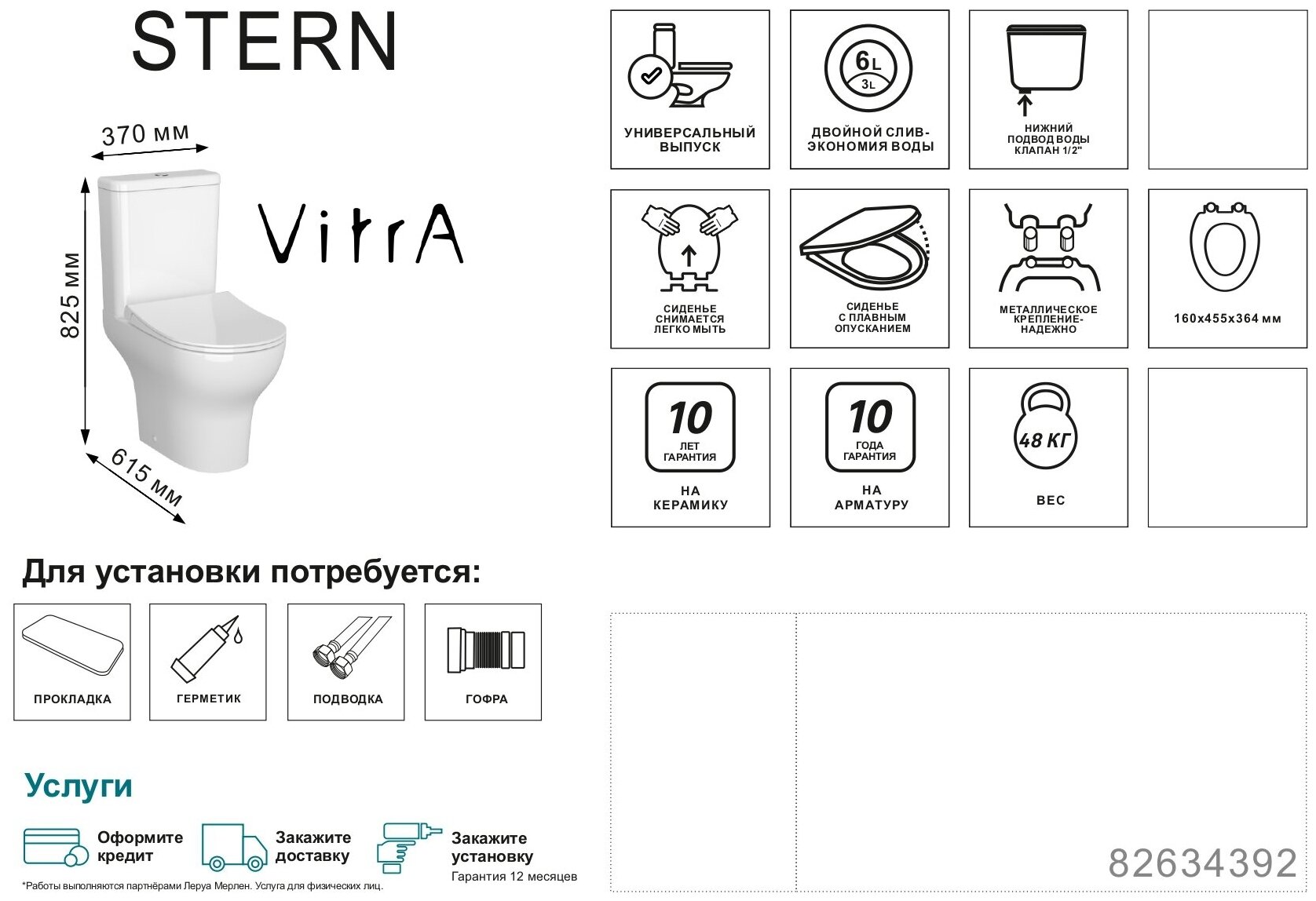 Унитаз-компакт Vitra Stern горизонтальный выпуск двойной слив интересное: