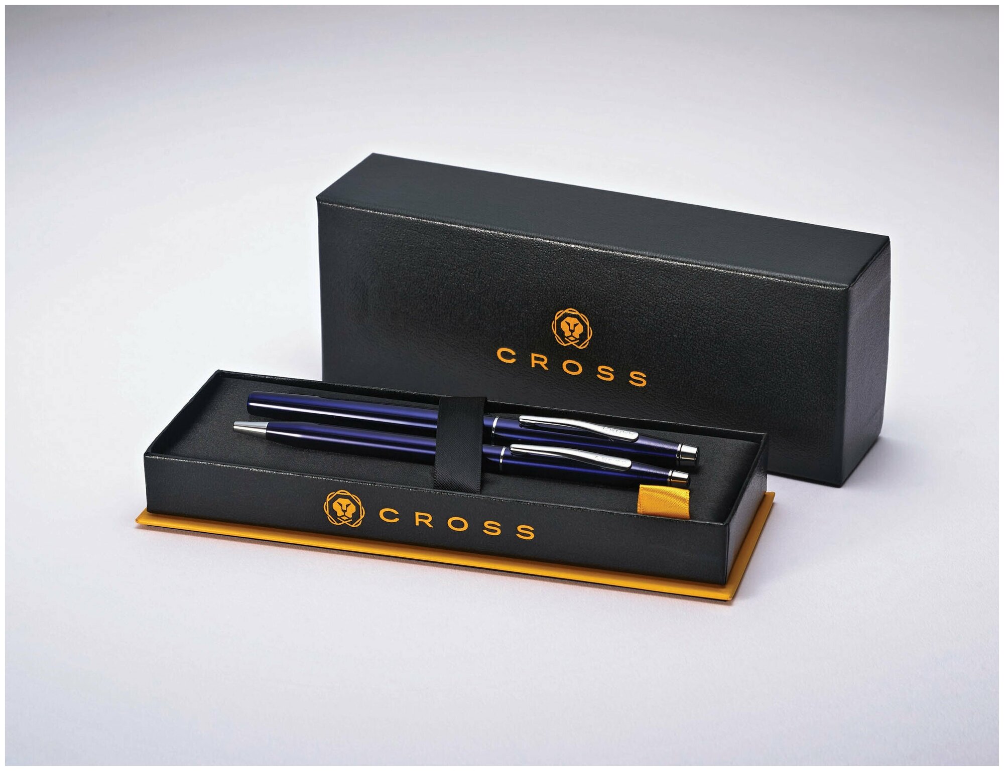 Набор Cross Classic Century Translucent Blue Lacquer: шариковая ручка и ручка-роллер, цвет - синий интересное: