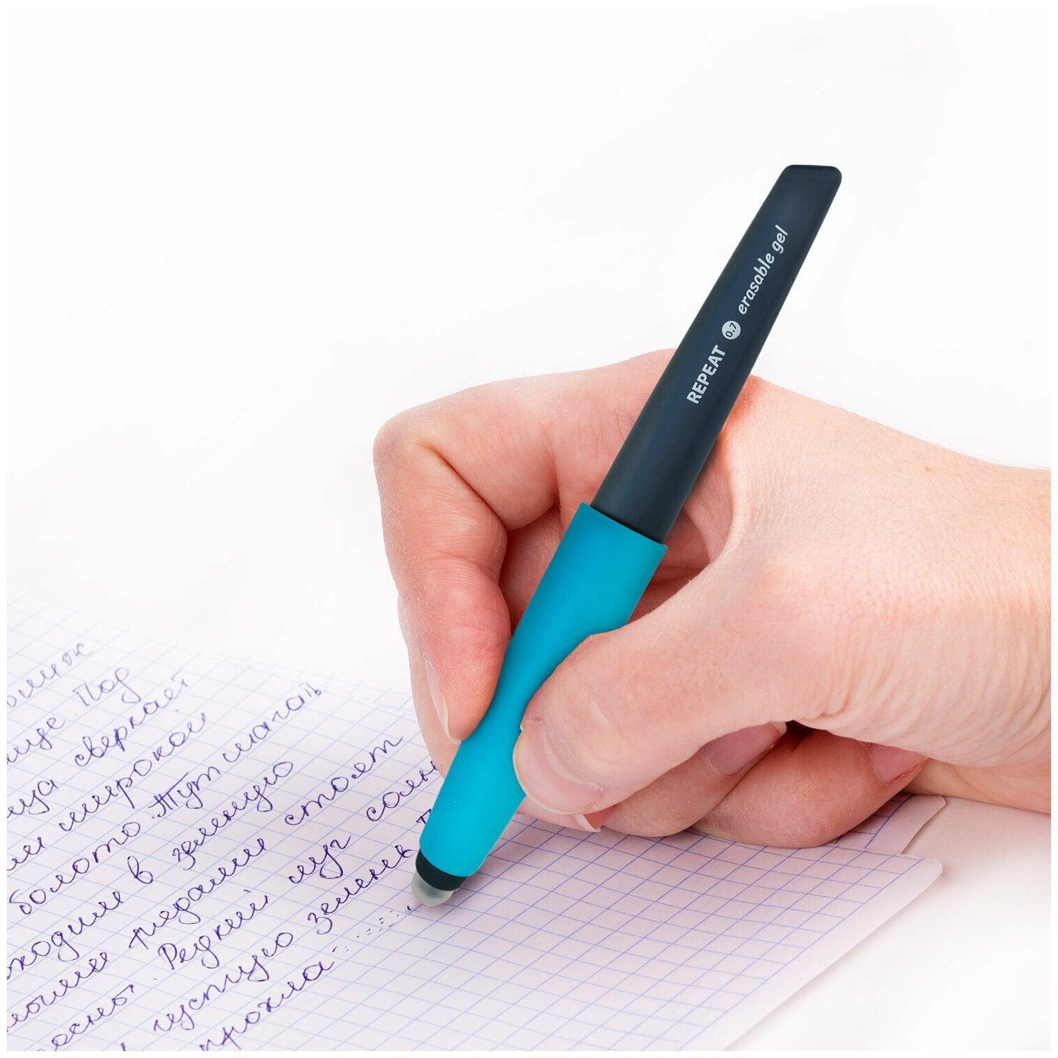 Ручка стираемая гелевая с эргономичным грипом BRAUBERG REPEAT, синяя, +3 сменных стержня, узел 0,7 мм, линия письма 0,5 мм, 143663, 143663
