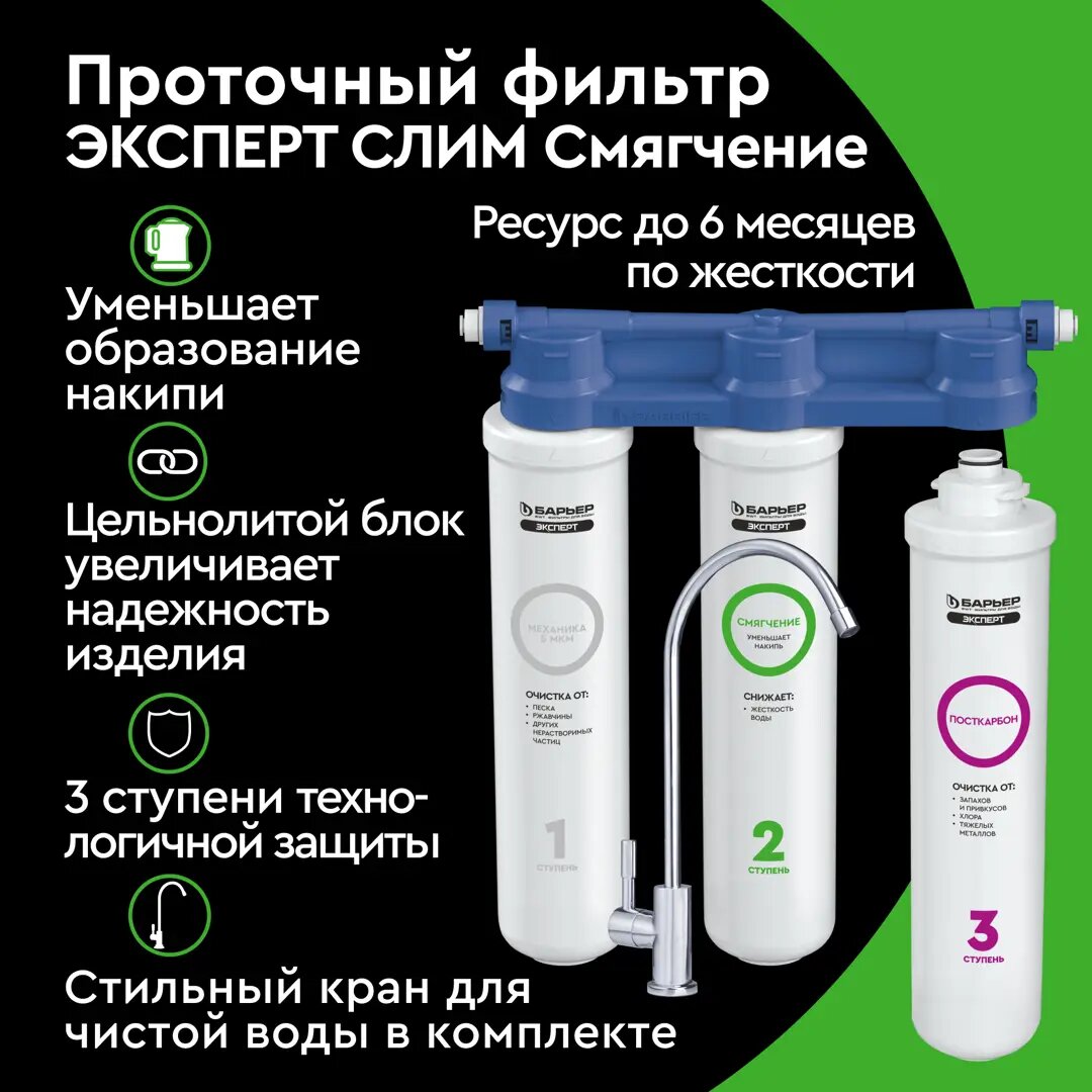 Фильтр под мойку Барьер Эксперт Slim Смягчение для жесткой воды 3 ступени интересное: