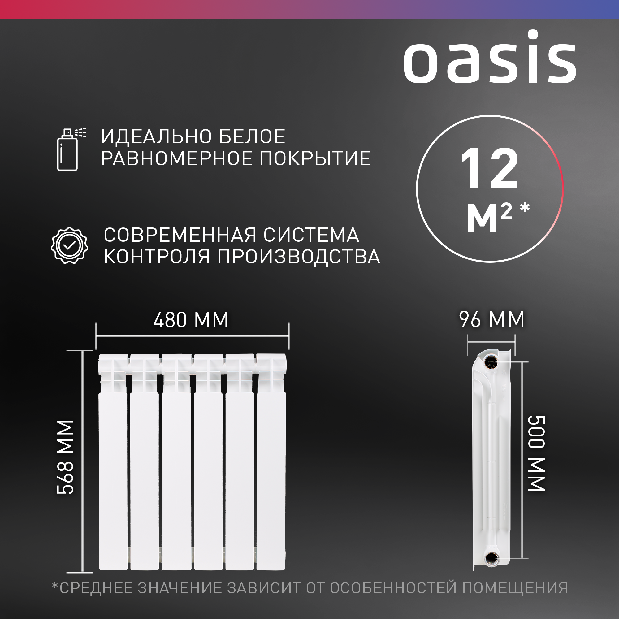 Радиатор отопления биметаллический Oasis Pro, модель 500/100/12, 12 секций