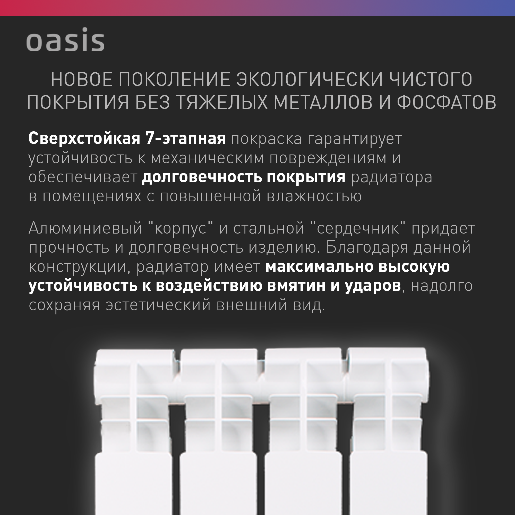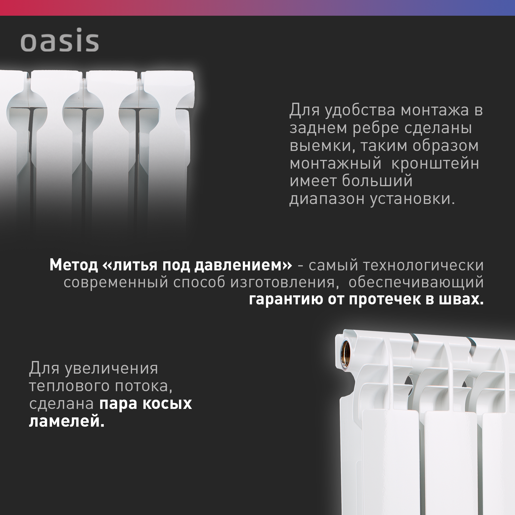 Радиатор отопления биметаллический Oasis Pro, модель 500/100/4, 4 секции