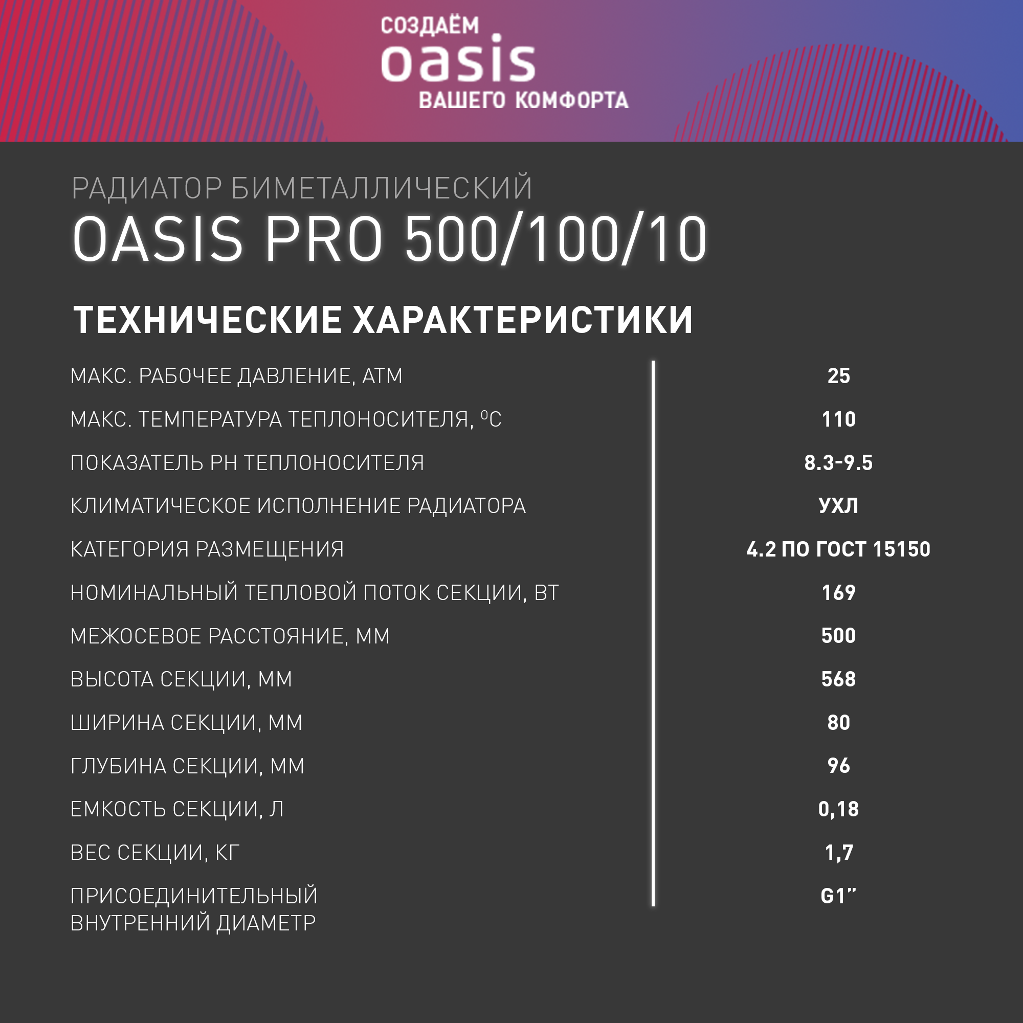 Биметаллические радиаторы Oasis Pro 500 100, 10 4640039484110