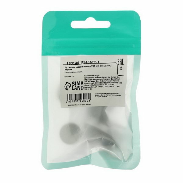 Наушники LuazON VBT 1.0, вкладыши, чёрные (2 упаковки)
