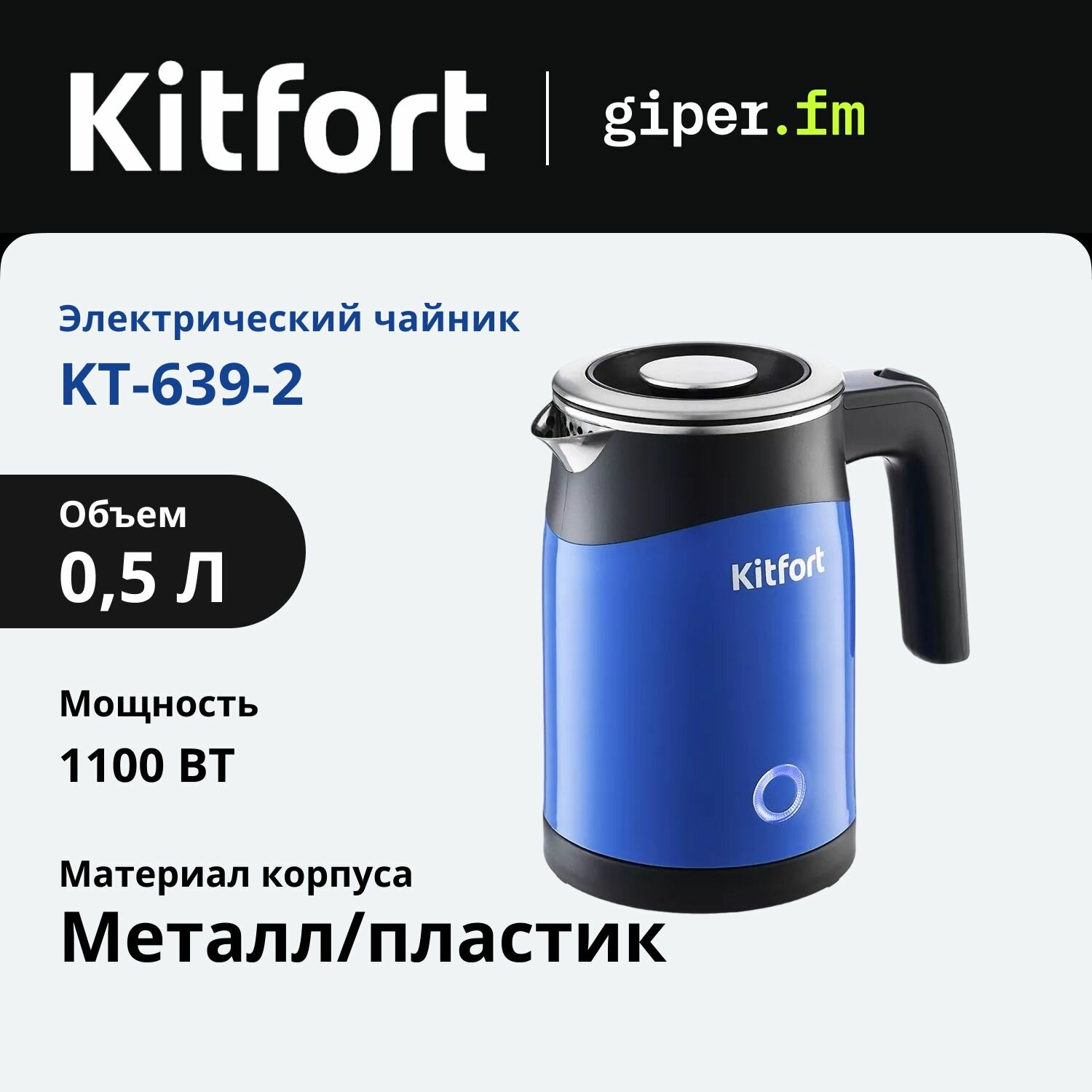 Чайник Kitfort мощность 920-1100 вт емкость 0,5 л синий КТ-639-2 .