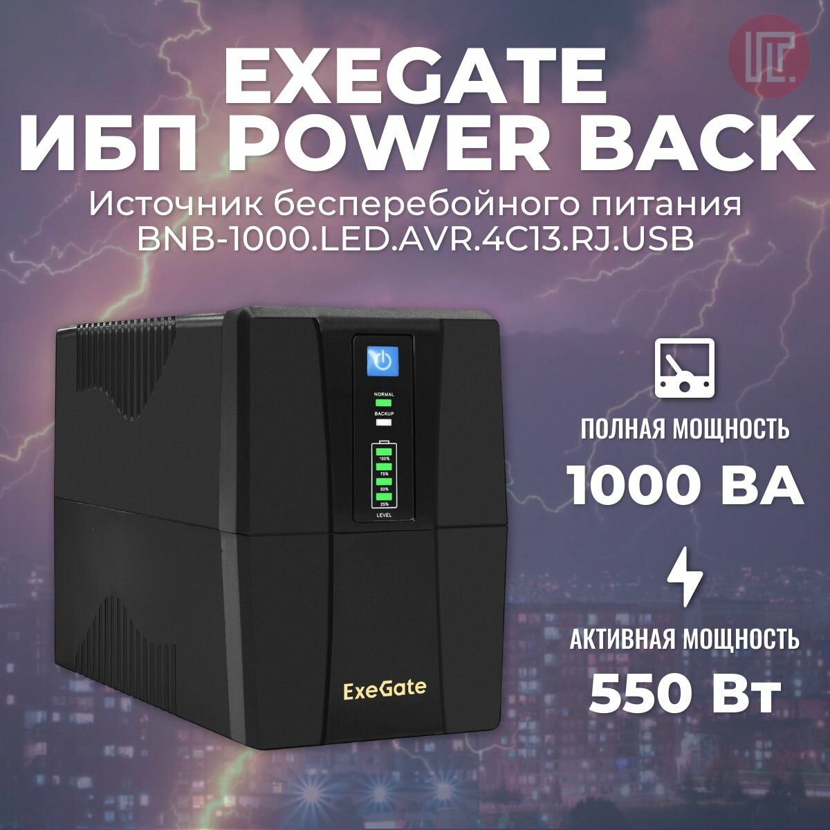 ИБП EXEGATE Power Back EX292785RUS 1000ВA, черный