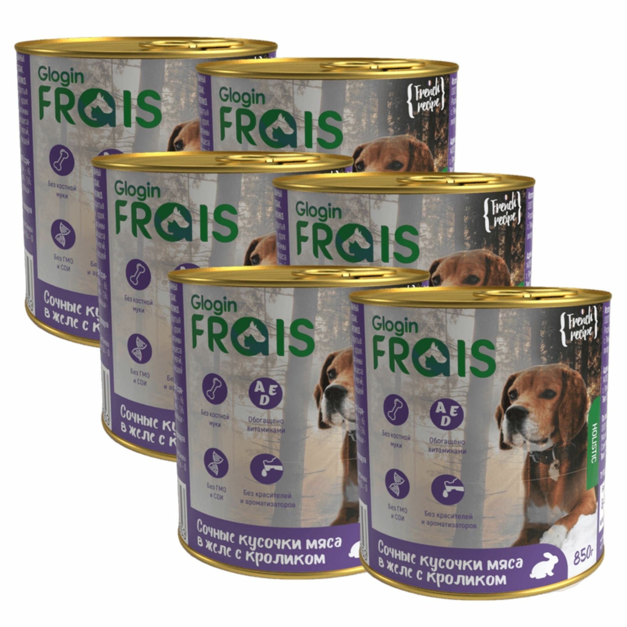Влажный корм для собак Frais Holistic сочные кусочки мяса в желе с кроликом, 850 гр х 6 шт