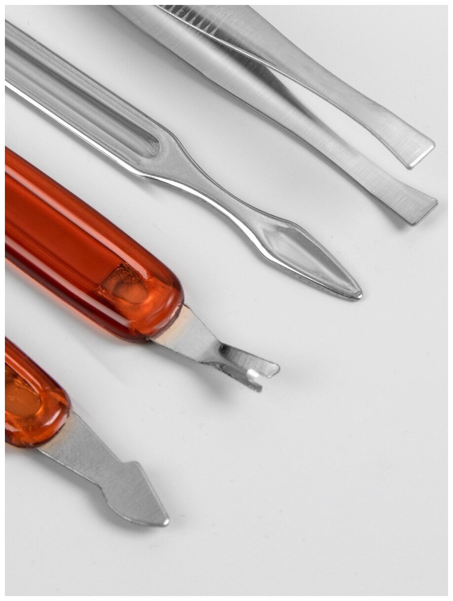 | Состав набора | книпсер, кусачки, ножницы, пилка, пинцет, пушер для кутикулы, скребок, триммер |