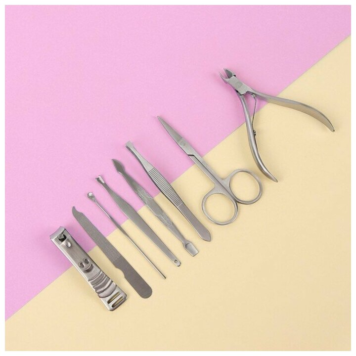 Набор маникюрный "Metallic", 8 предметов, в футляре, цвет серебристый