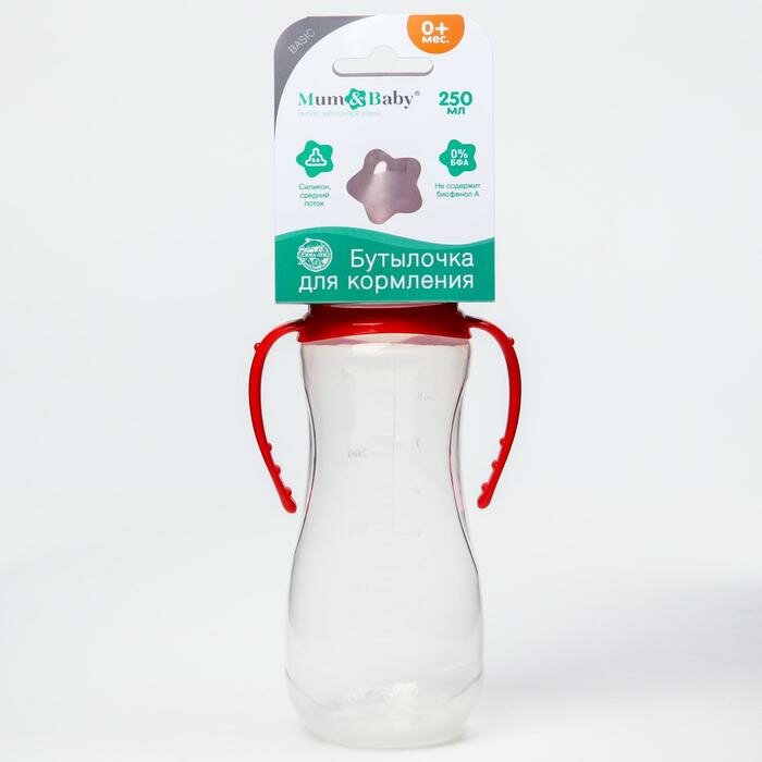 Mum&Baby Бутылочка для кормления 250 мл приталенная, с ручками, цвет микс интересное: