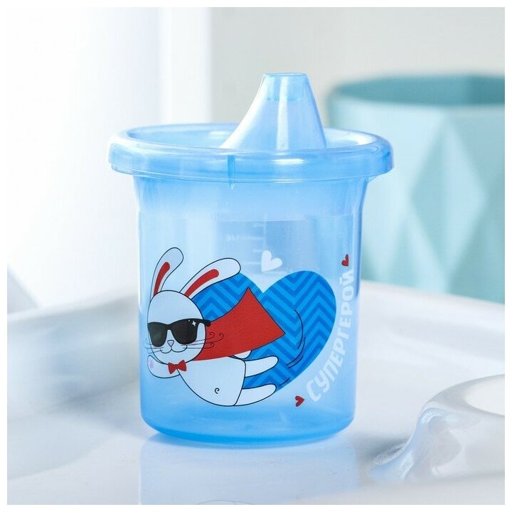 Mum&Baby Поильник детский «Зайка супергерой!», с твёрдым носиком 200 мл, цвет голубой/синий интересное: