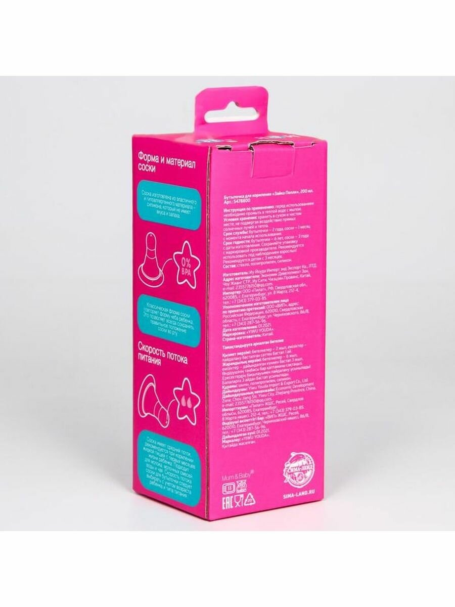 СохранитьБутылочка для кормления стекло, 200 мл, «Зайка Полли», стандартное горло, срдний поток интересное: