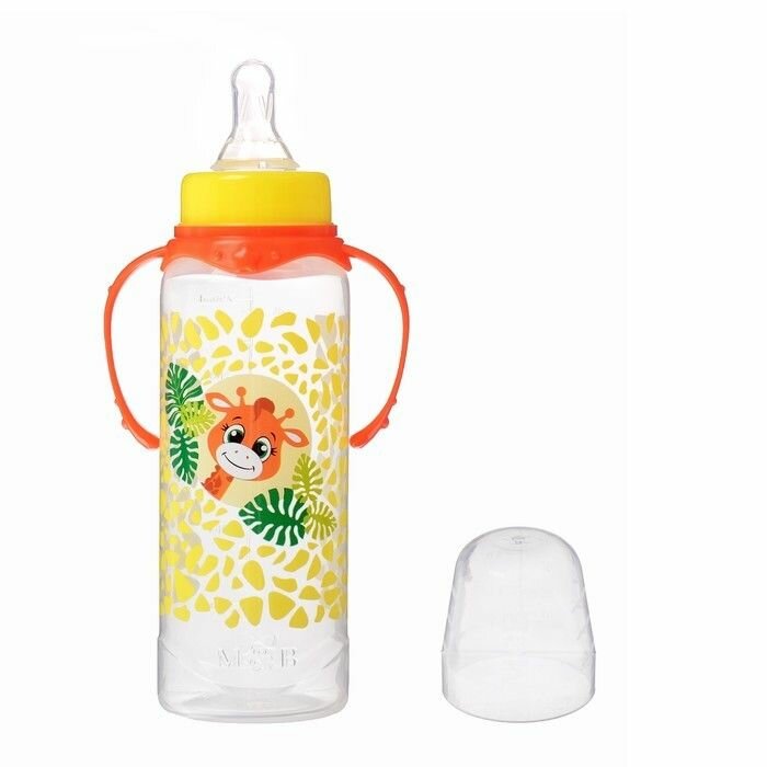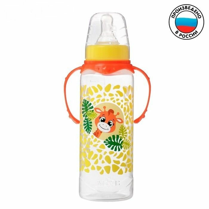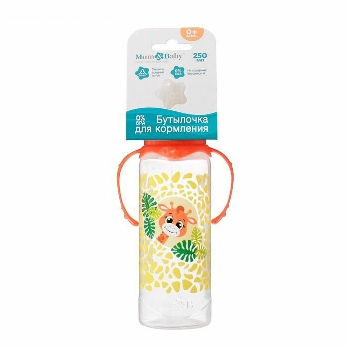 Купить Mum&Baby Бутылочка для кормления «Жирафик Лило» детская классическая, с ручками, 250 мл, от 0 мес., цвет оранжевый