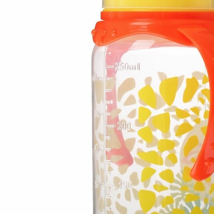 Бутылочка для кормления "Жирафик Лило" детская классическая, с ручками, 250 мл, от 0 мес., цвет оранжевый
