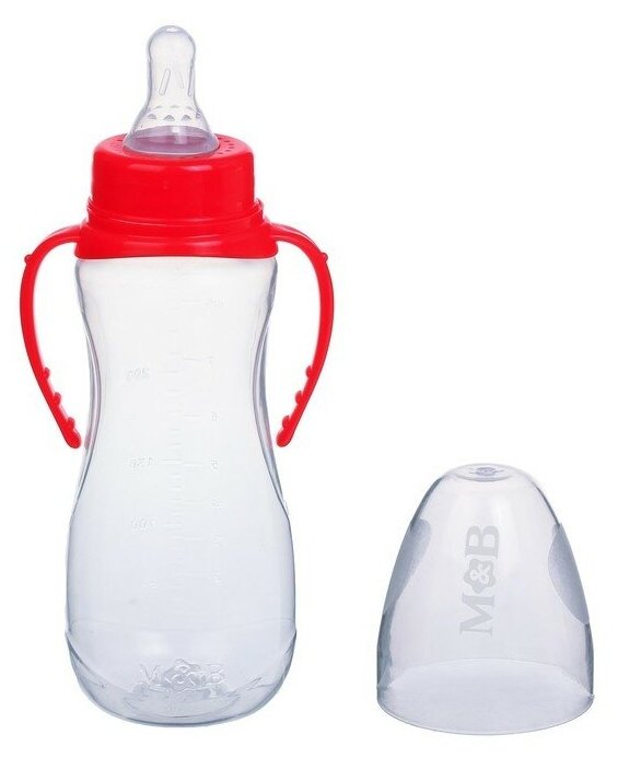 Бутылочка для кормления малыша M&B, классическое горло, с ручками, от 3 мес., 250 мл, цвет красный
