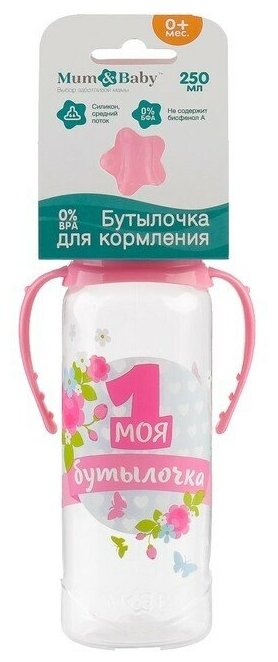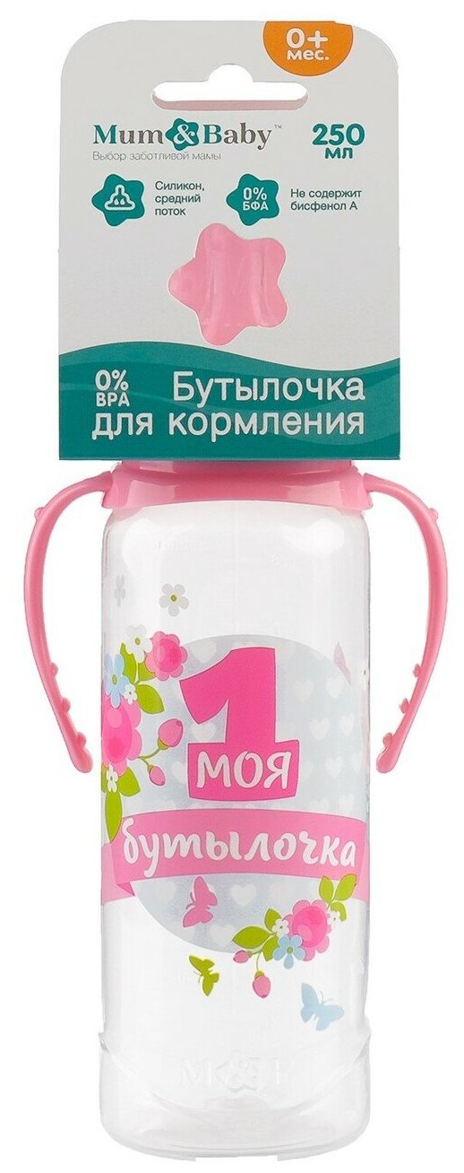 Бутылочка для кормления «Моя первая бутылочка» детская классическая, с ручками, 250 мл, от 0 мес., цвет розовый интересное: