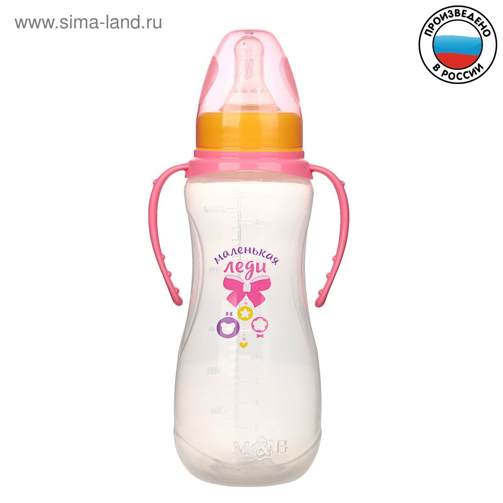 Купить Бутылочка для кормления «Маленькая леди» детская приталенная, с ручками, 250 мл, от 0 мес., цвет розовый