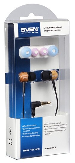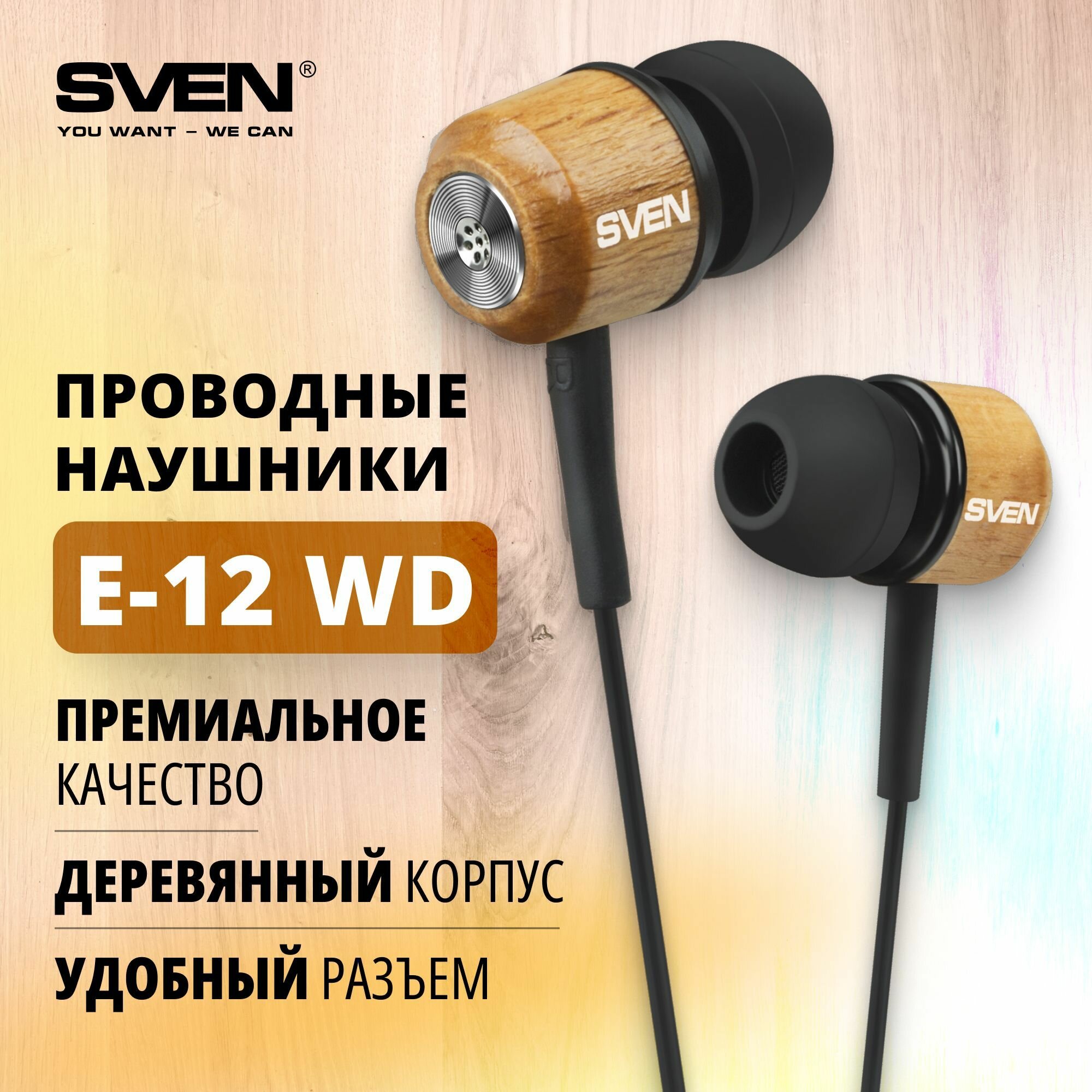 Наушники вкладыши Sven SEB 12 WD 1.2м черный/светлое дерево проводные в ушной раковине (SV-042-12 WD)