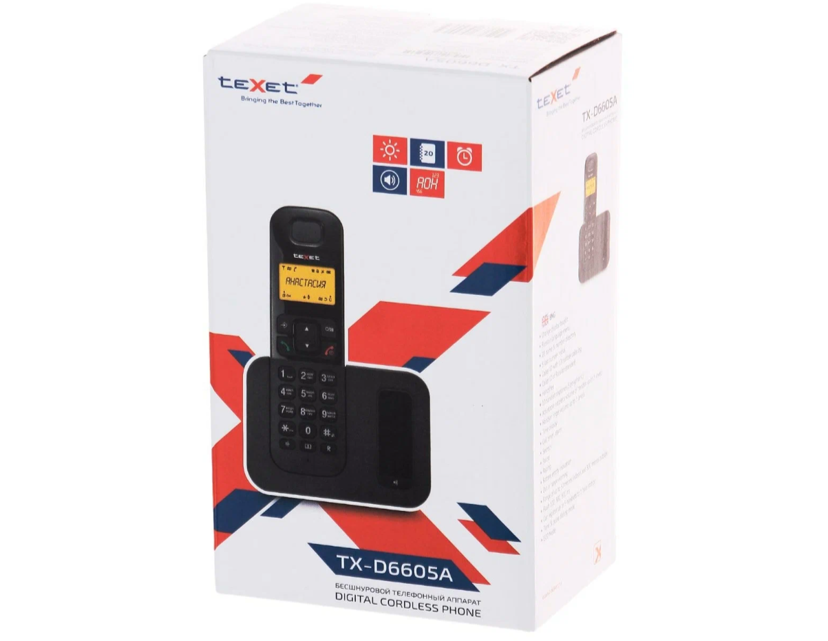 Ниже Вы можете прочитать отзывы на Телефон беспроводной teXet TX-D6605А, АОН, 20 номеров, черный, ознакомится с подробными характеристиками, посмотреть интересные обзоры и фотографии на Телефон беспроводной teXet TX-D6605А, АОН, 20 номеров, черный.