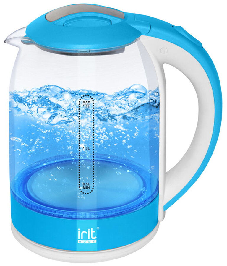 Чайник Irit IR-1914 электрический дисковый, стекло, 1.8л, 1500Вт, голубой