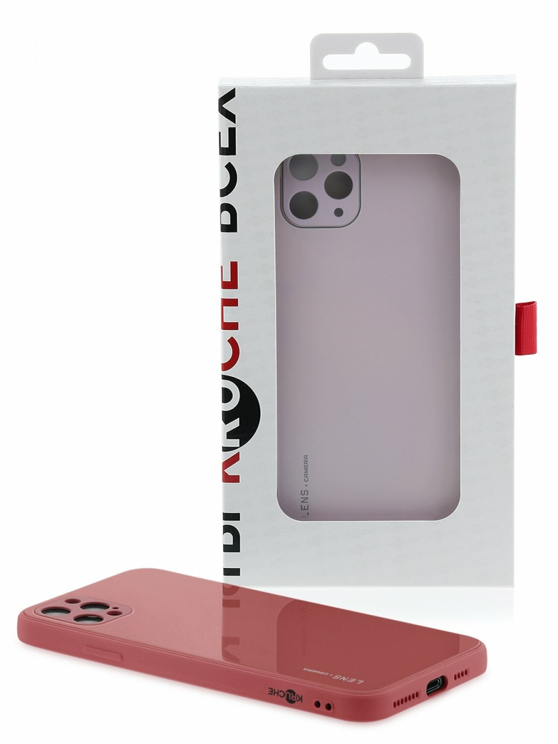 Чехол для iPhone 12 Pro Kruche Liquid glass Red,противоударный стеклянный кейс,силиконовый бампер,пластиковая накладка,защита камеры интересное:
