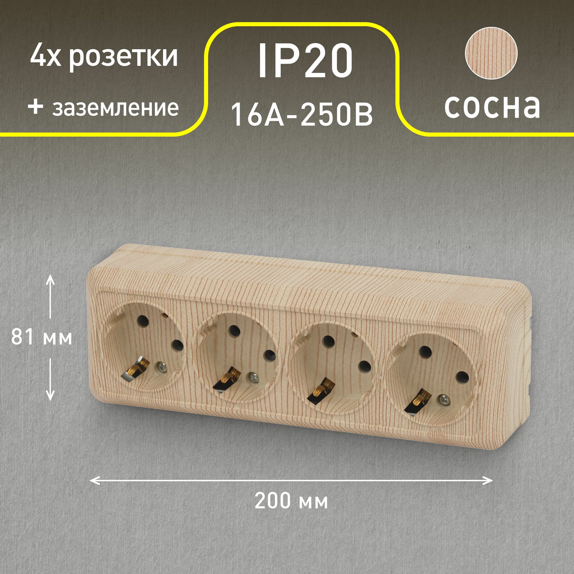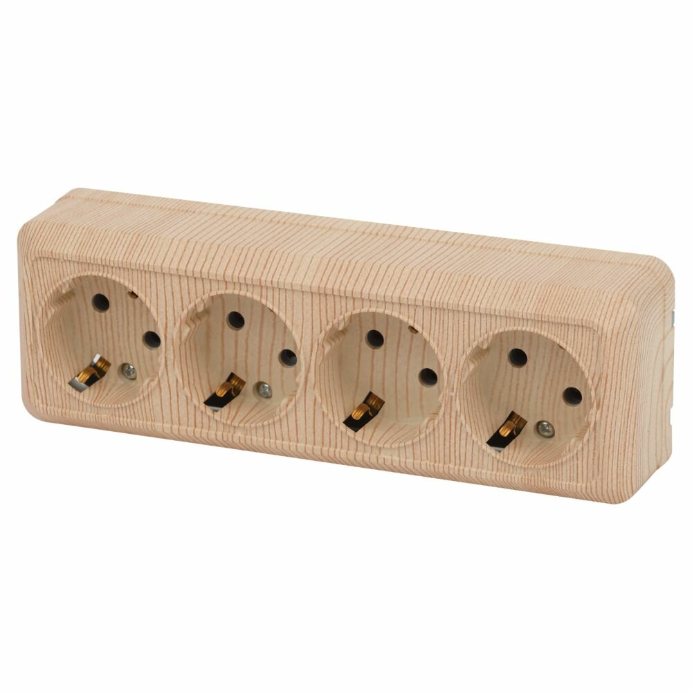 Купить Розетка Intro Quadro 2-208-11 с заземлением четырехместная 4х2P+E, 16А-250В, IP20, ОУ, сосна