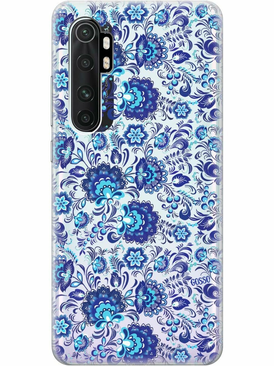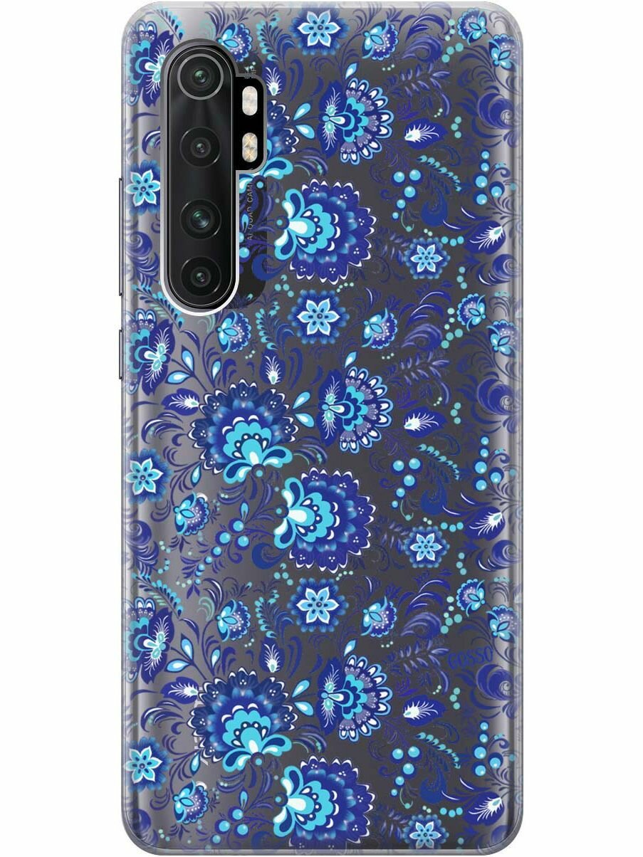 Ультратонкий силиконовый чехол-накладка Transparent для Xiaomi Mi Note 10 Lite с 3D принтом "Gzhel" интересное: