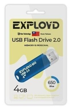 Флеш-накопитель 4Gb Exployd 650, USB 2.0, пластик, синий
