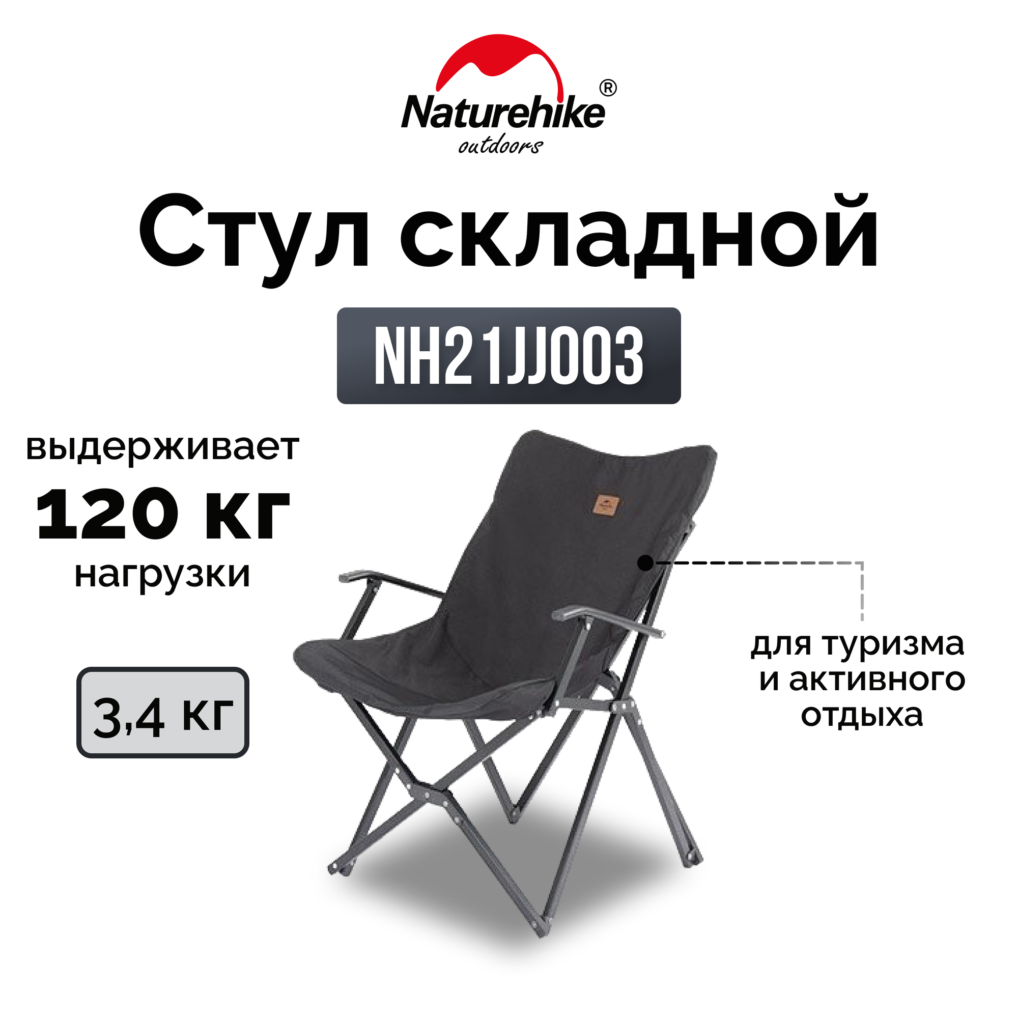 Стул складной Naturehike NH21JJ003 , черный, 6927595774724 интересное: