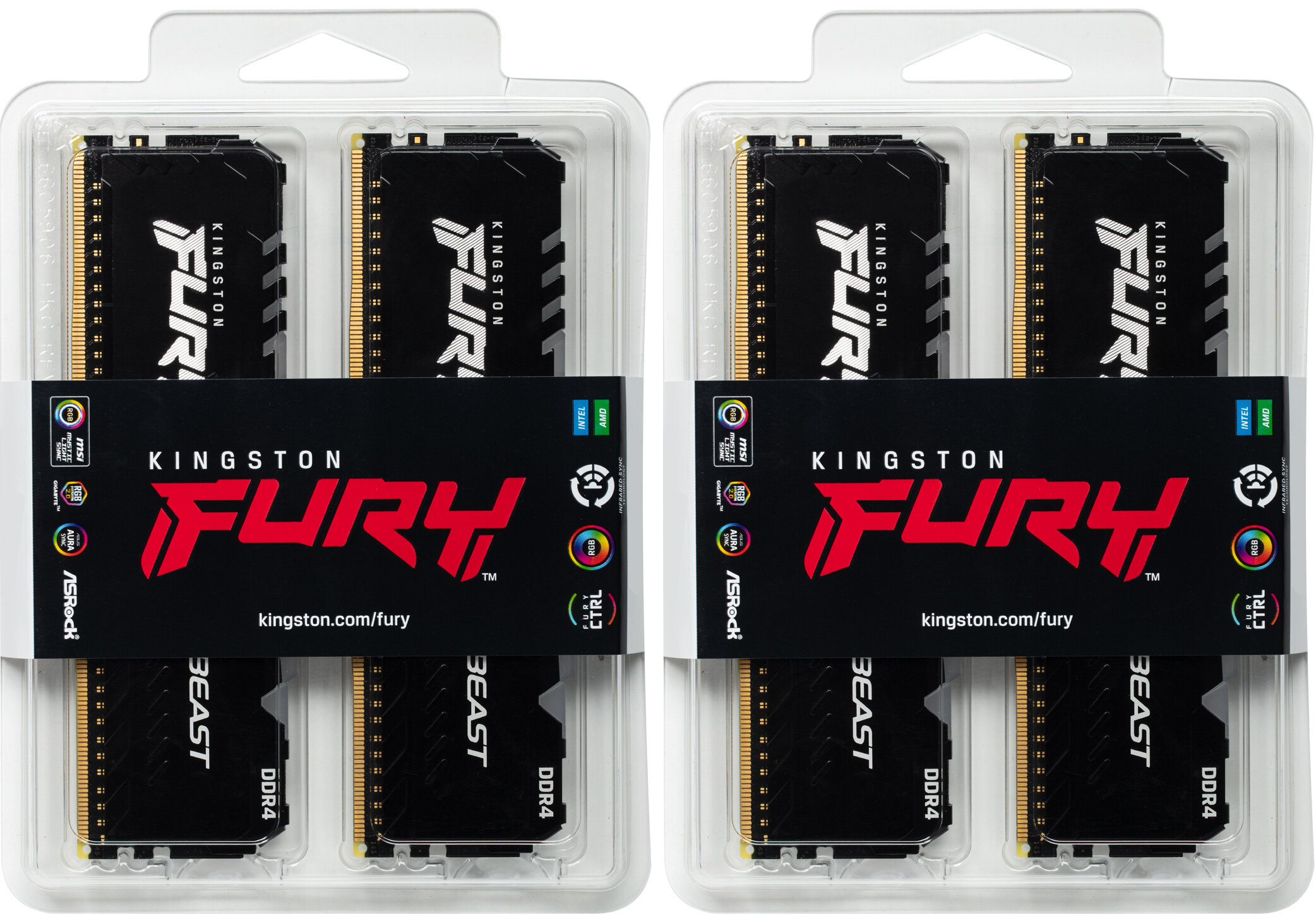Память оперативная/ Kingston 64GB 3600MHz DDR4 CL18 DIMM (Kit of 4) FURY Beast RGB интересное: