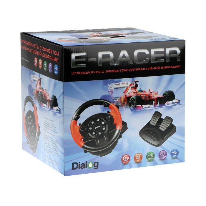 Купить Dialog Руль Dialog GW-125VR E-Racer, проводной, вибрация, для PC, 2 педали, пычаг ПП, USB