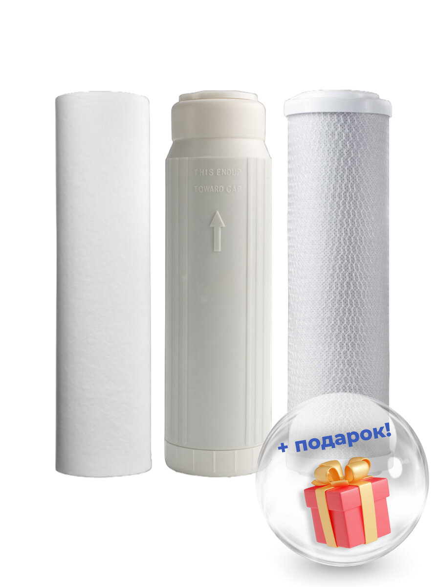 Комплект сменных для ЖЕСТКОЙ ИЗВЕСТКОВОЙ воды к фильтру ТРИО НОРМА, Гейзер СТАНДАРТ, Барьер ПРОФИ и других из 3Х КОЛБ