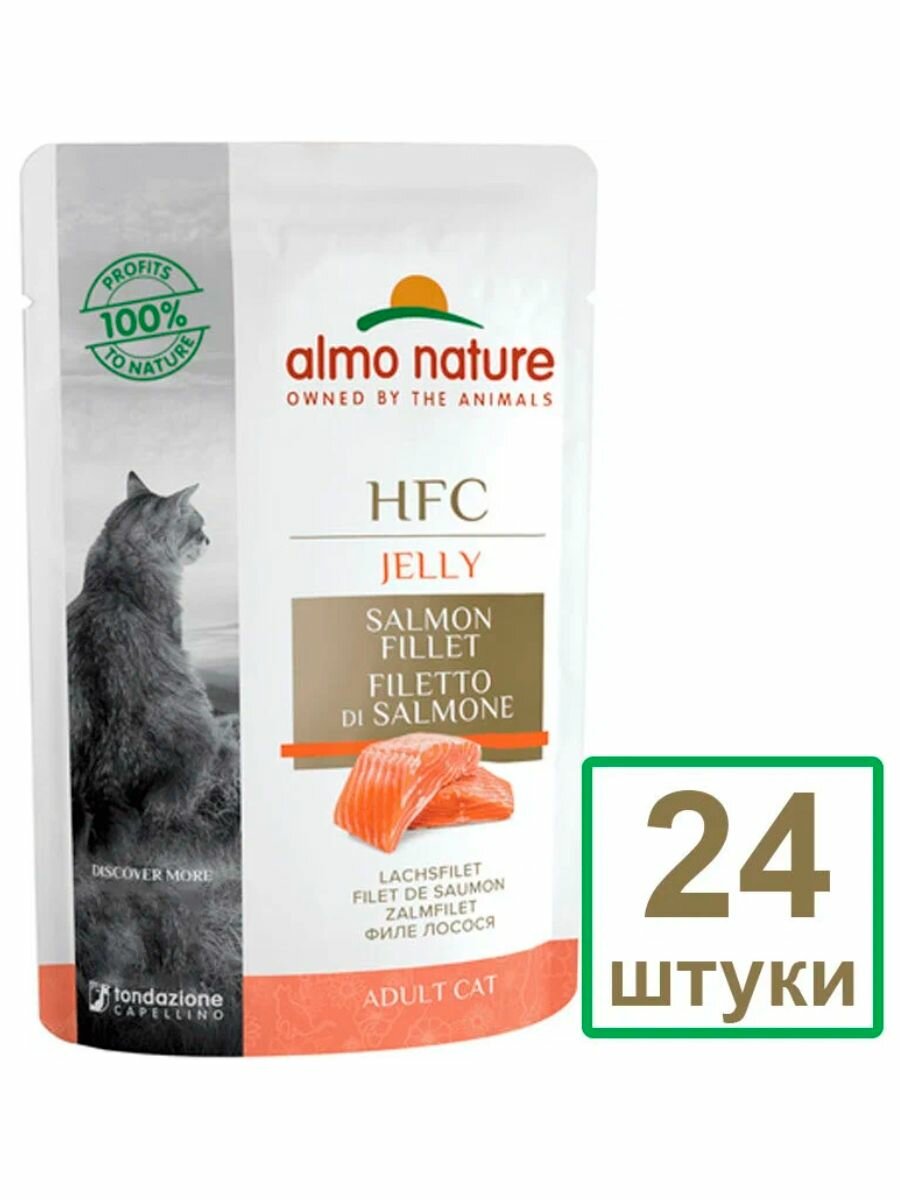 Almo Nature Набор 24 штуки по 55 г Паучи Лосось в Желе для кошек (HFC - Jelly - with Salmon) 1.32кг
