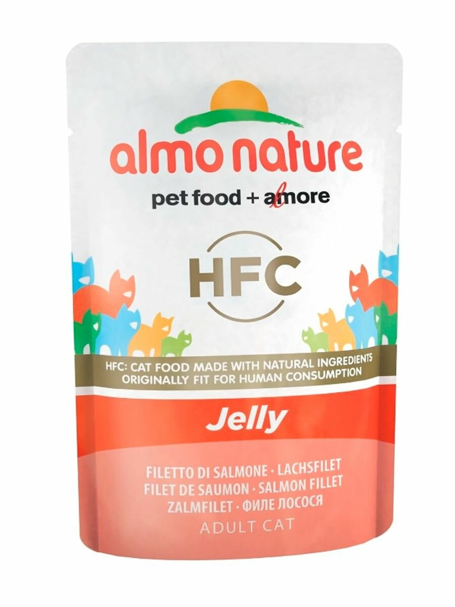 ALMO NATURE CAT HFC JELLY для взрослых кошек с лососем в желе (55 гр х 24 шт)