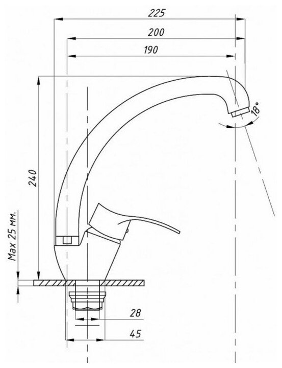 | Длина излива | 225 мм |