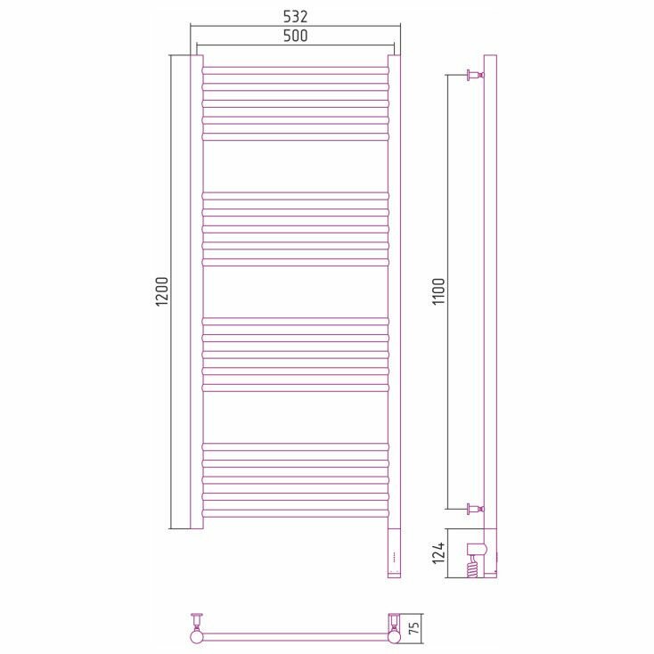 Электрический полотенцесушитель Сунержа Богема 3.0 прямая 1200х500 птэн без покрытия