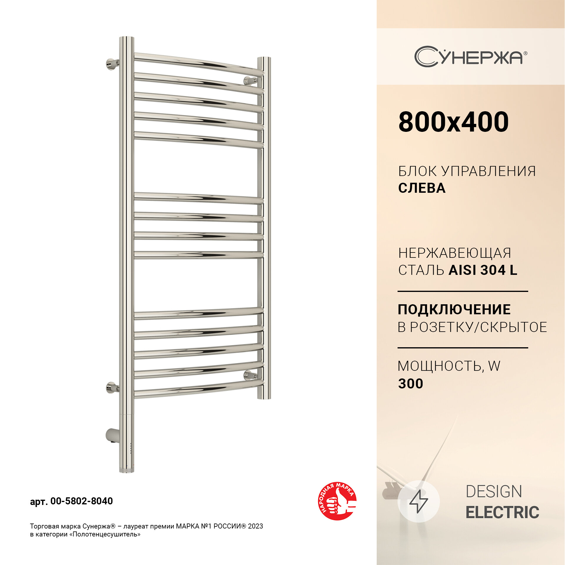 Купить Электрический полотенцесушитель Сунержа Богема 3.0 выгнутая 800x400 МЭМ Лев. арт. 00-5802-8040