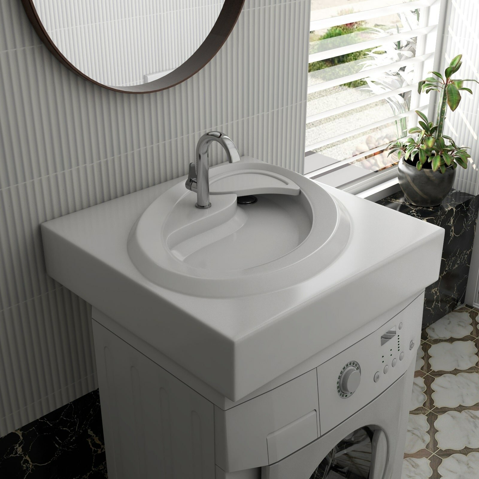 Умывальник "Topaz-60*55" ш*г над стиральной машиной, с кронштейнами (Andrea)