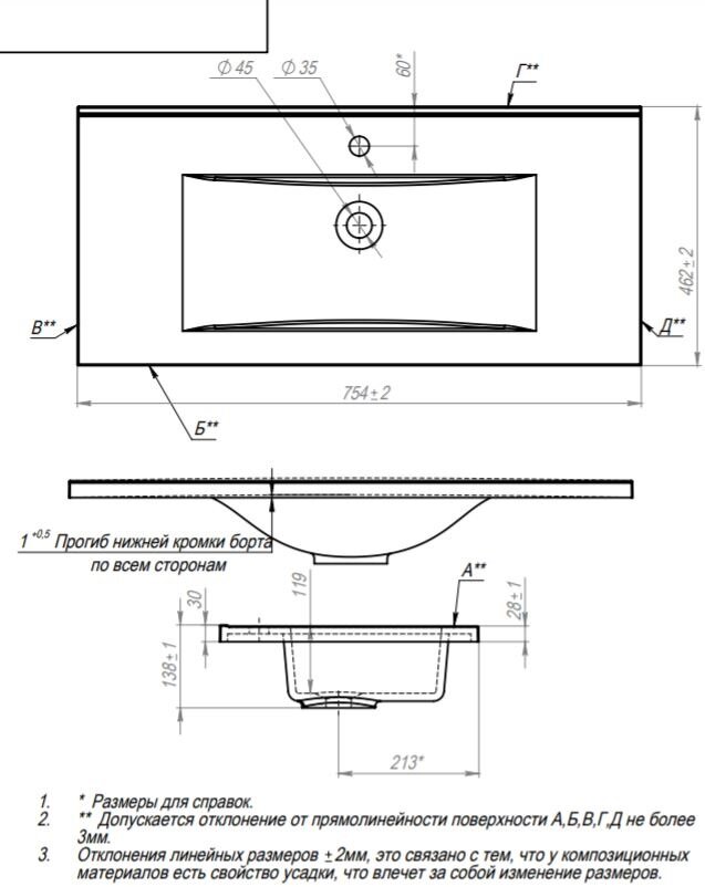 Раковина Andrea SV (75 см, прямоугольная) интересное: