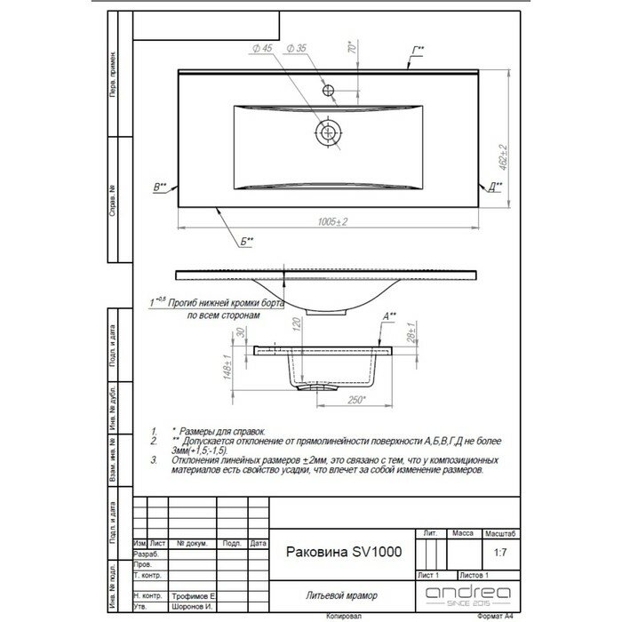 Раковина Andrea SV (100 см, прямоугольная) интересное: