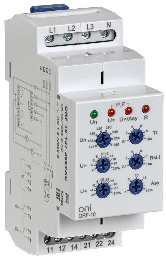 Реле фаз ORF-10 3ф. 2 конт. 127-265В AC с контр. нейтр., ONI (IEK) ORF10127265VAC (1 шт.)
