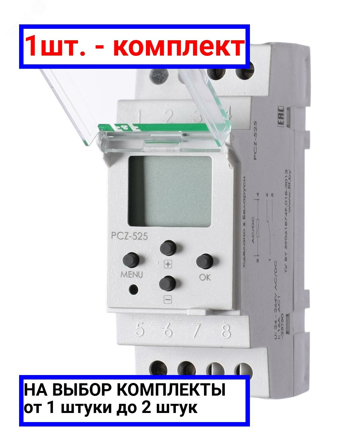 Купить Реле времени астрономическое PCZ-525 24-264В AC/DC 16А 1 переключ. контакт IP20 1 канал монтаж на DIN-рейке F&F EA02.002.005