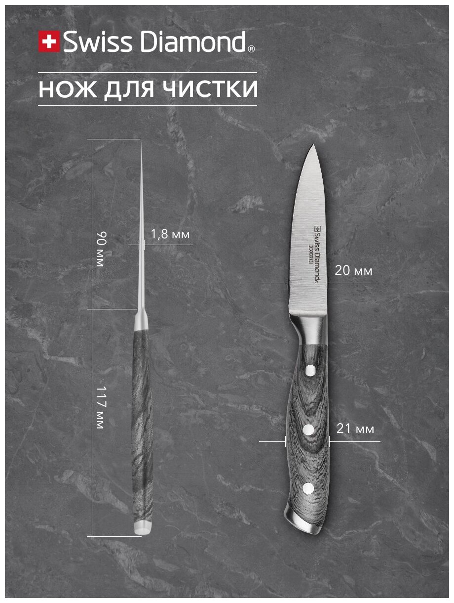 Нож кухонный для чистки 9 см Swiss Diamond Desire SDPR-09 / нож кухонный для овощей / нож кухонный для фруктов интересное: